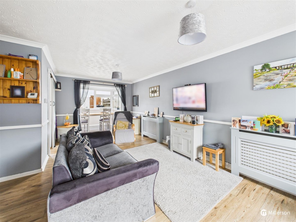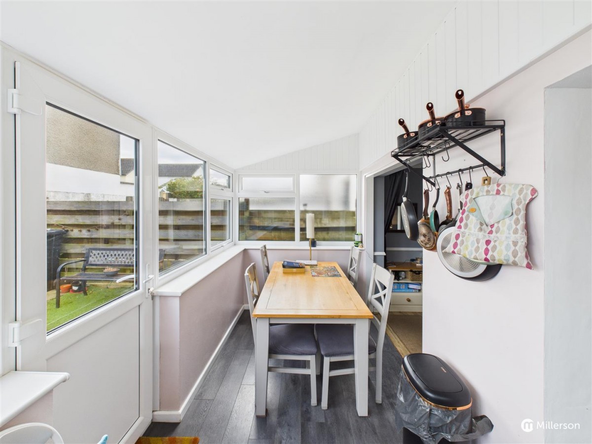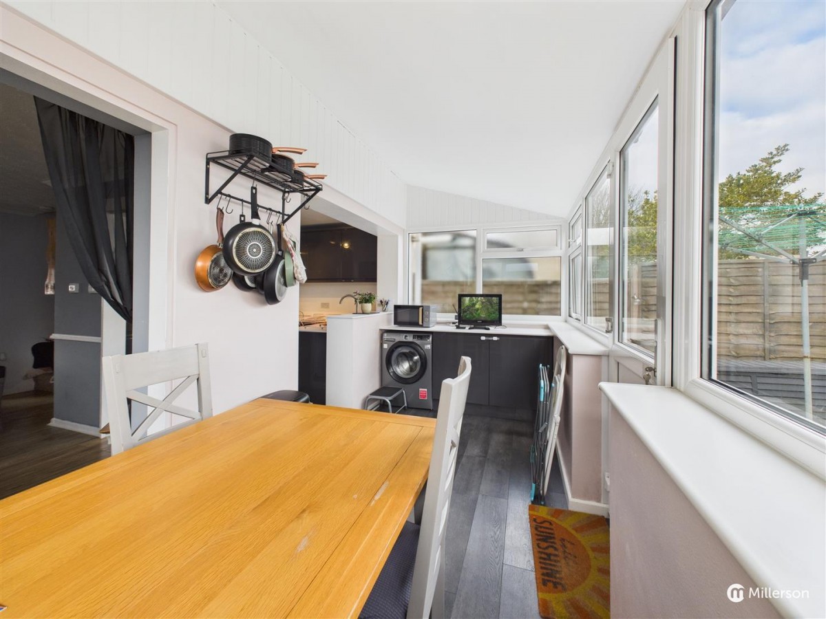 Dining area: laminate flooring, double glazed windows to three sides, double glazed door to the rear, space for dining table and chairs.