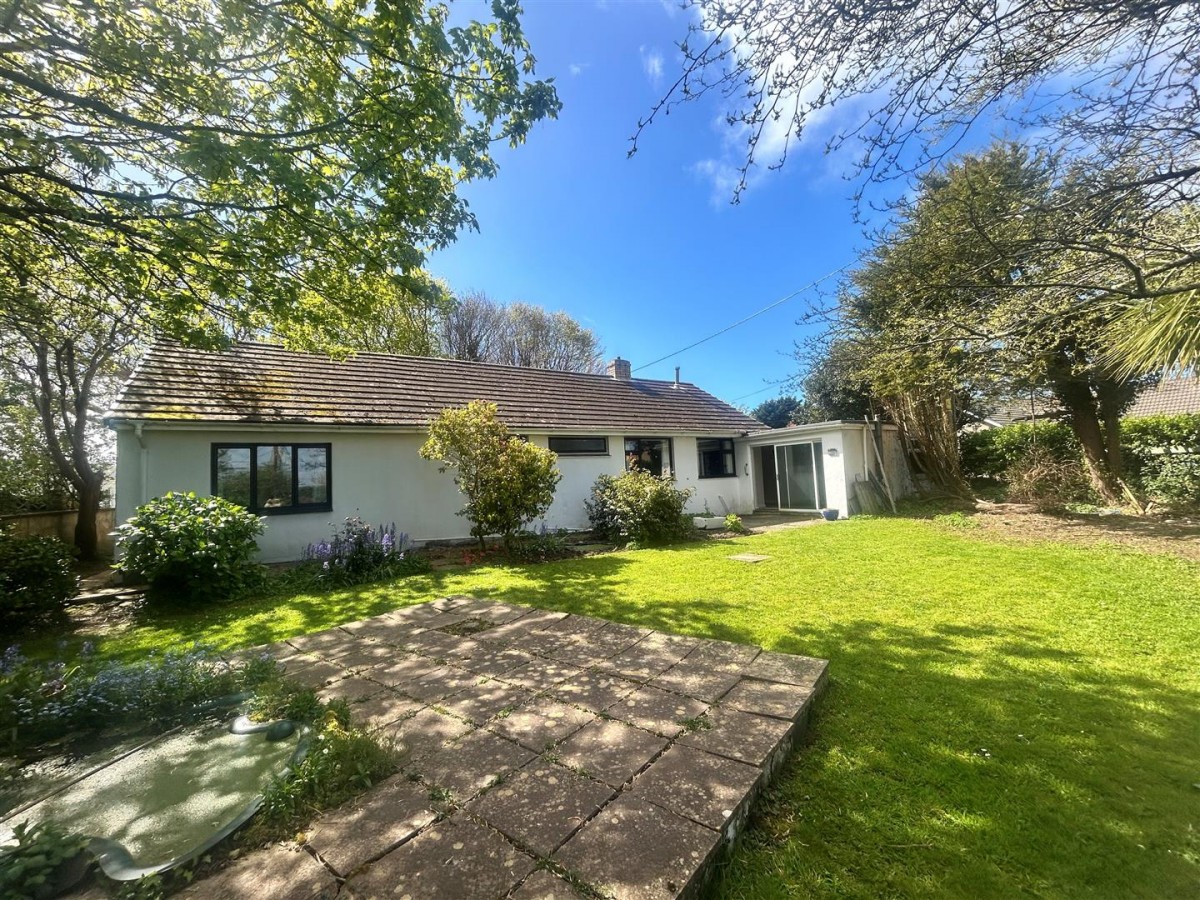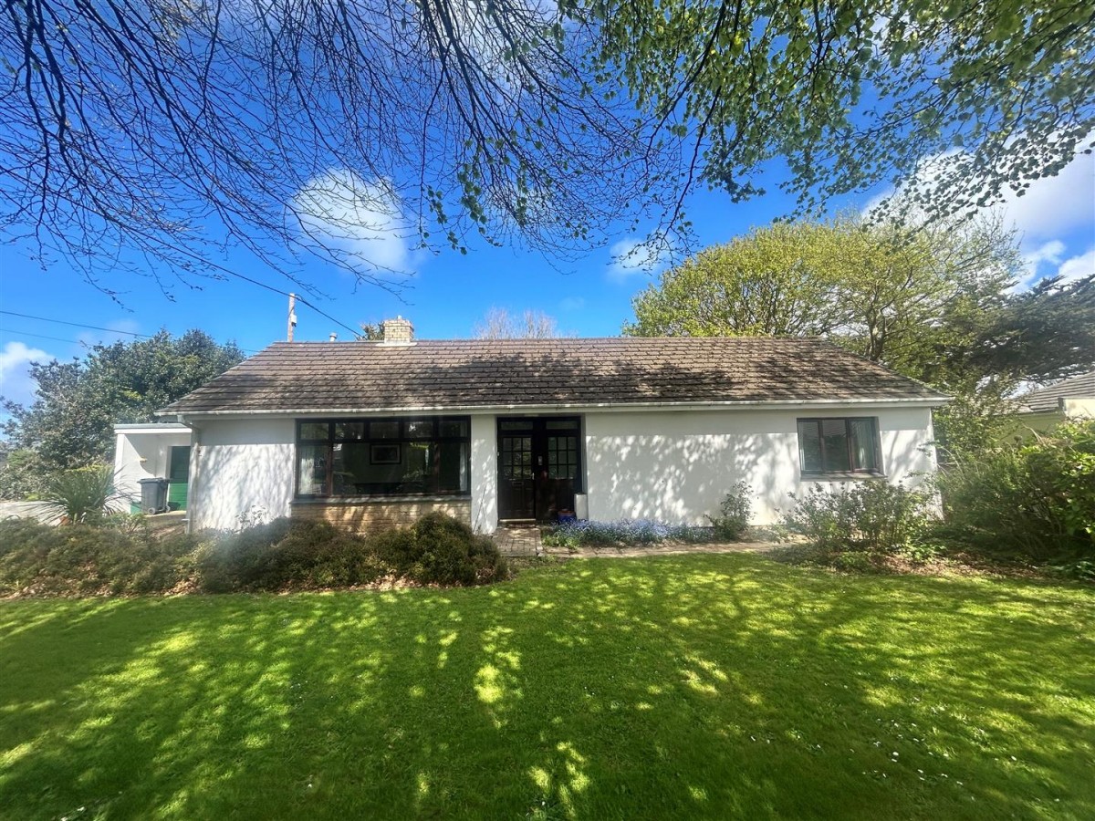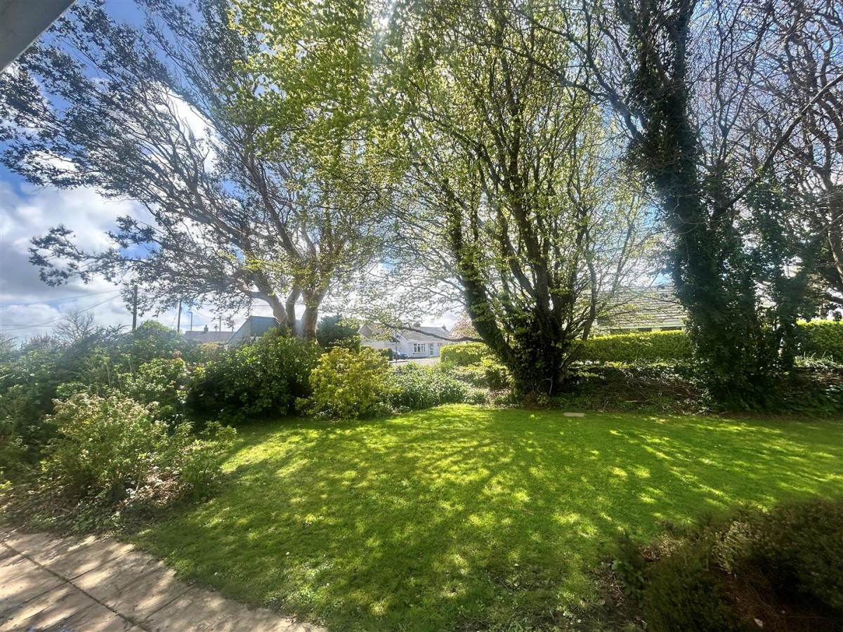 The front garden is laid to lawn with mature trees, enclosed by walling. A paved pathway leads to the front door, gated access to the side of the bungalow provides access to the rear garden.