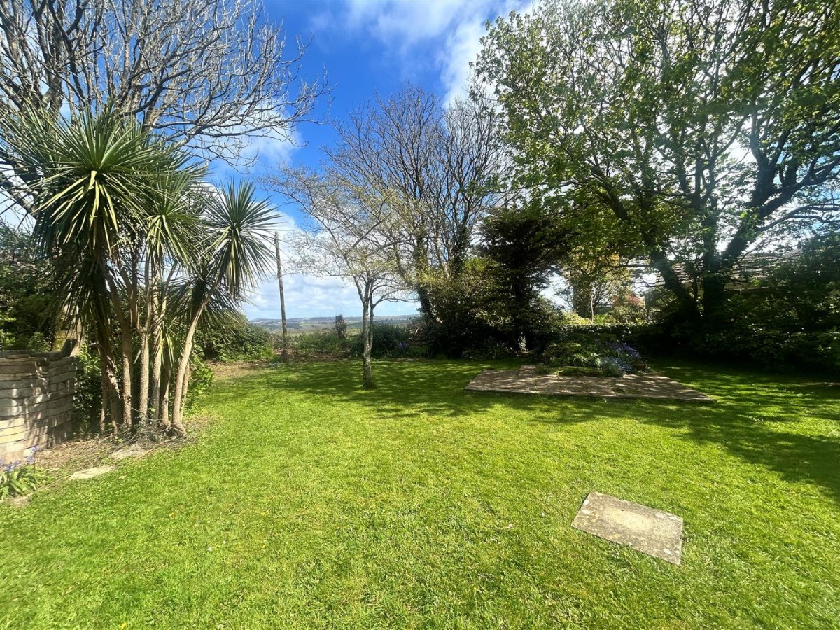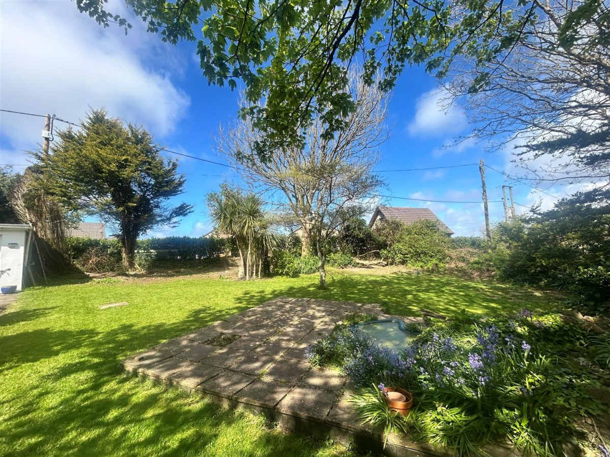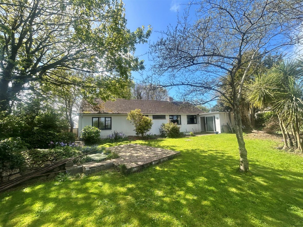 The front garden is laid to lawn with mature trees, enclosed by walling. A paved pathway leads to the front door, gated access to the side of the bungalow provides access to the rear garden.
