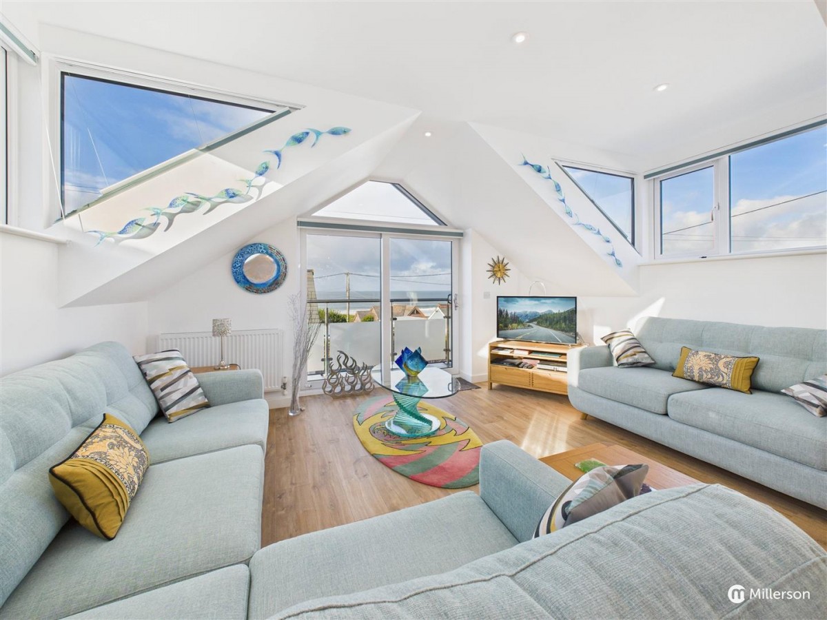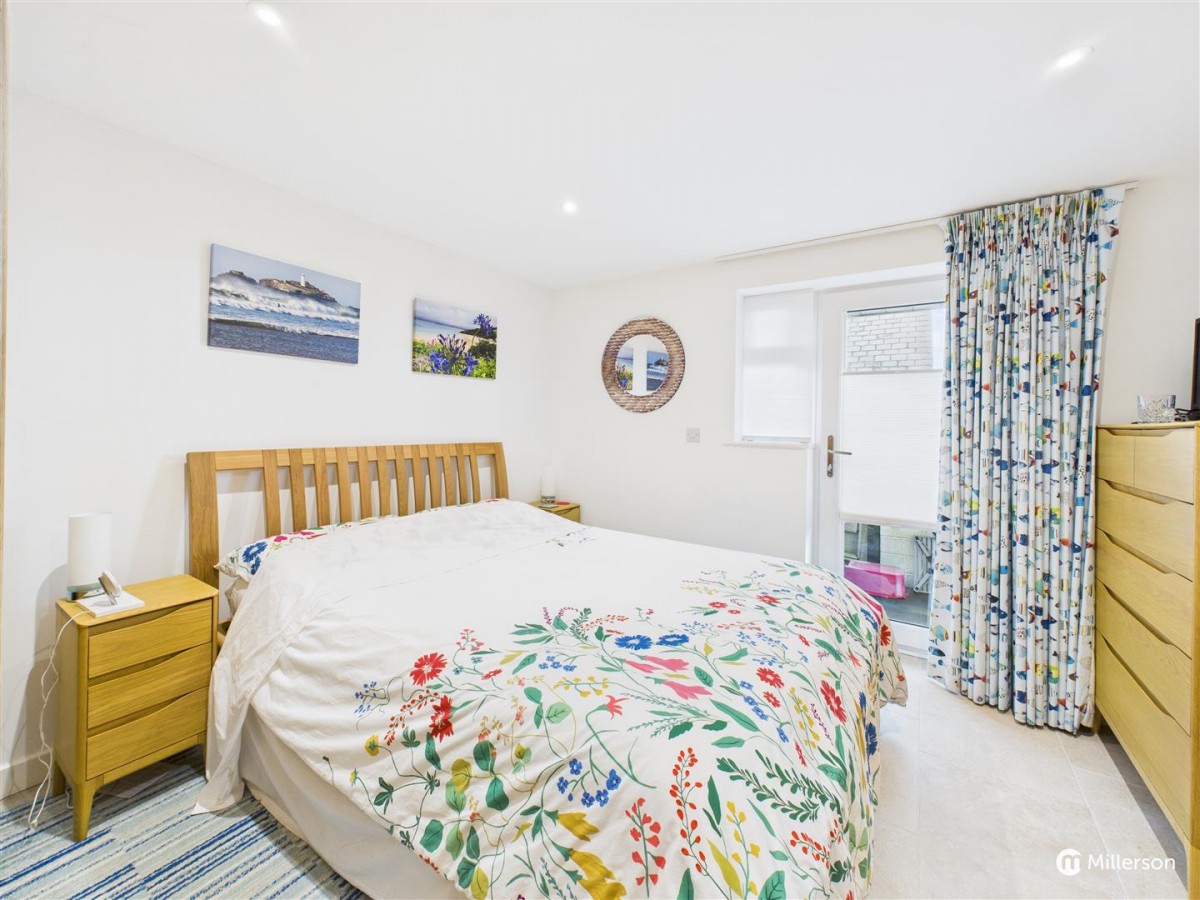 Tiled, heated flooring, inset ceiling spot lights, triple glazed window to the rear with distant sea views, triple glazed door to the rear, leading onto the rear decking.