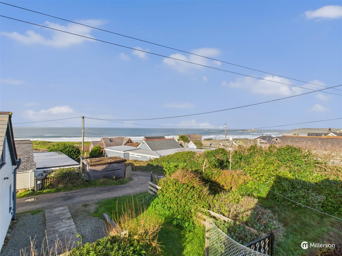 Balcony: tiled flooring, glass surround with stainless steel hand rail, offering delightful sea and coast views, across to Godrevy lighthouse.