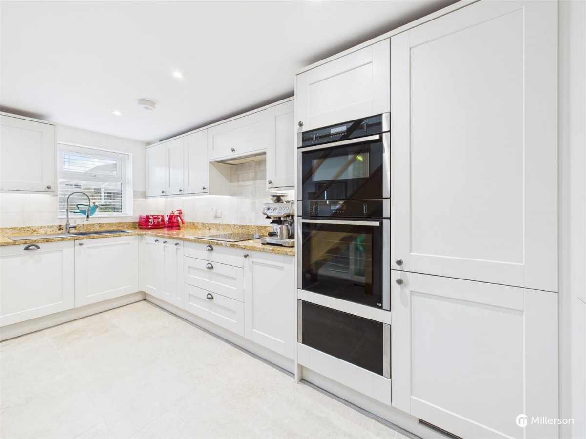 Kitchen: a well equipped shaker style fitted kitchen with a range of base and floor mounted units, granite work surface. Sink and drainer with mixer tap. Triple glazed window to the front, Neff units comprising of : integrated microwave, oven, and warming drawer, induction hob with extractor above.