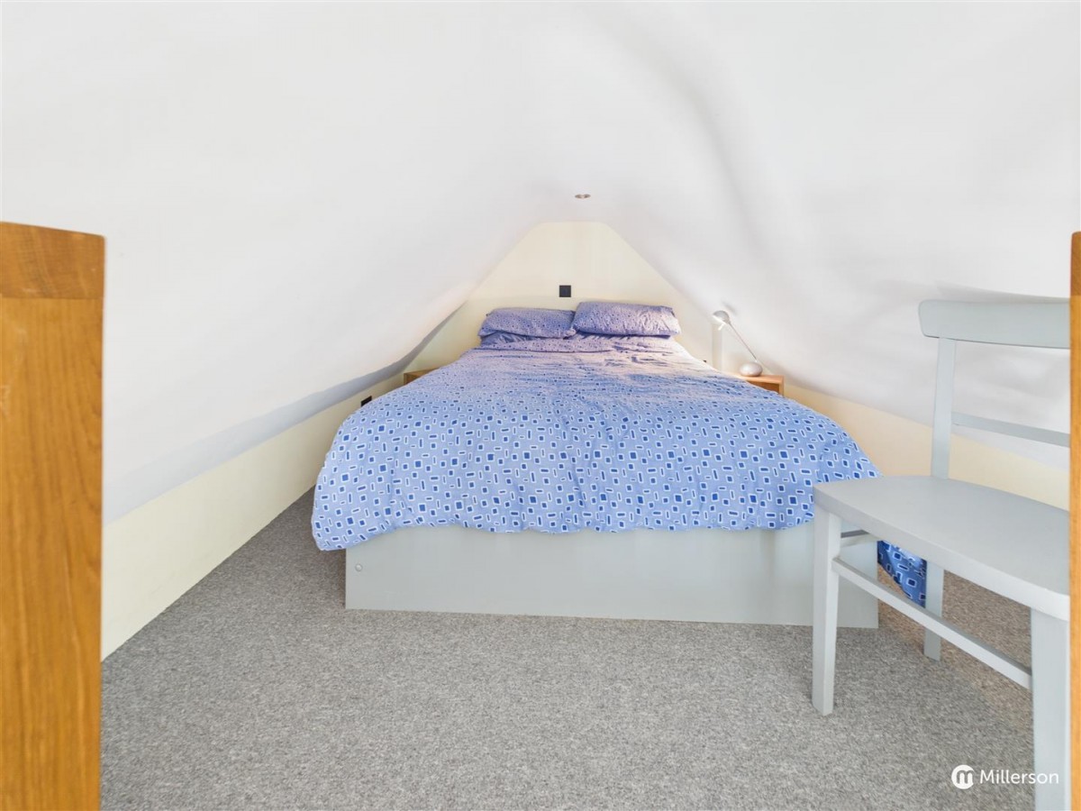 Accessed by an oak ladder staircase and having oak and glass balustrading, restricted head height.