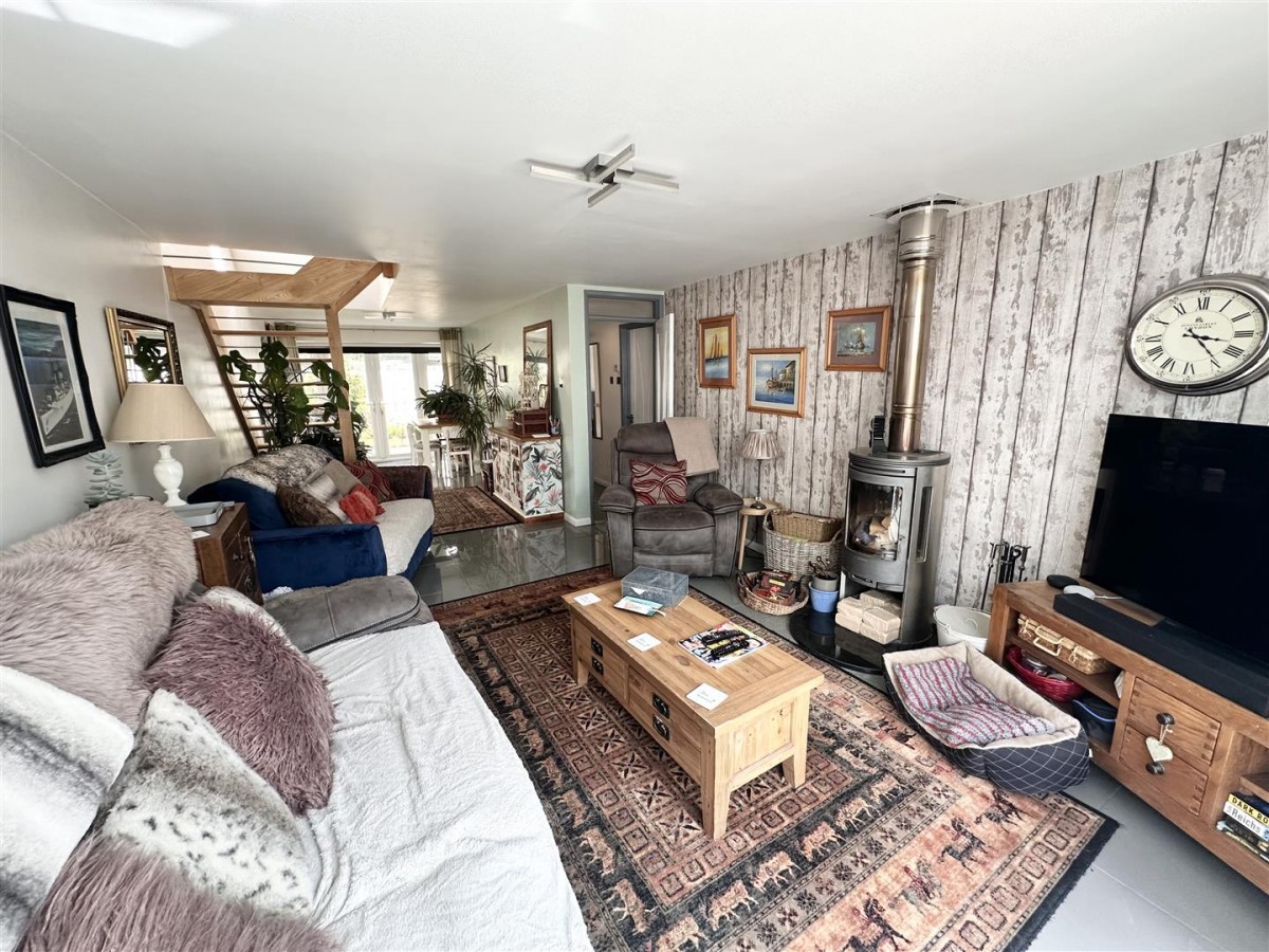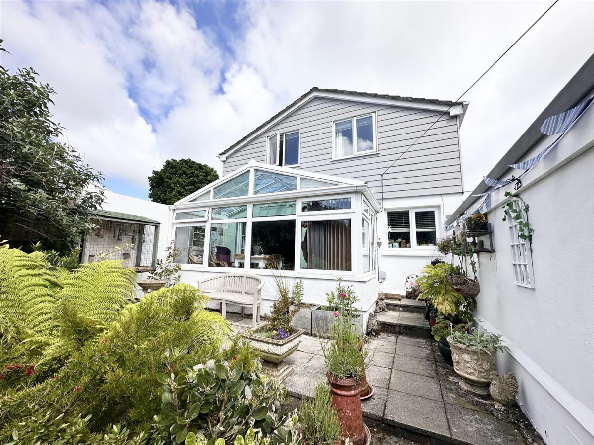 The outside space is a real feature of the property. To the front of the residence a driveway provides parking for a number of cars and leads to a garage. The front garden is mainly laid to lawn with well-established shrubs and plants along with a pleasant pond with cascading water feature and a miniature mock Cornish mine engine house. The current vendors of the property have made significant additions outside, with a wonderful 4 Metre X 3 Metre Log Cabin in the front garden with an air conditioning unit installed providing heating and cooling. In addition there's also a useful Greenhouse. In the back garden there is a pleasant summerhouse along with two timber sheds. There is a light outside the front door and blue LEDs at the bottom of the wall and up the steps to front door on timers. There is a 'Dusk 'til Dawn' light on the end of the garage. In front of the property is a raised patio area which would seem ideal for Al Fresco dining. To the rear of the residence the garden is designed with low maintenance in mind and is laid with stone chippings. The Oil fired boiler and Oil tank (1200 litres) are also here. There is also a side entrance with gate to back garden.