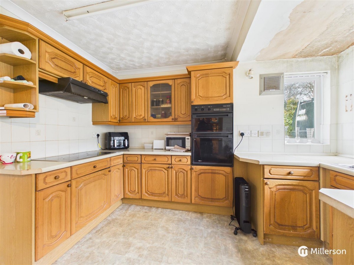 Lino Flooring. A range of floor standing and wall mounted cupboard and drawer units with polished stone effect Work surfaces over. Inset four ring halogen hob. Space for built-in oven. 1 1/2 bowl stainless steel sink unit with drainer board and mixer tap over. UPVC double glazed window to side elevation. Doors opening to both boiler room and utility room.