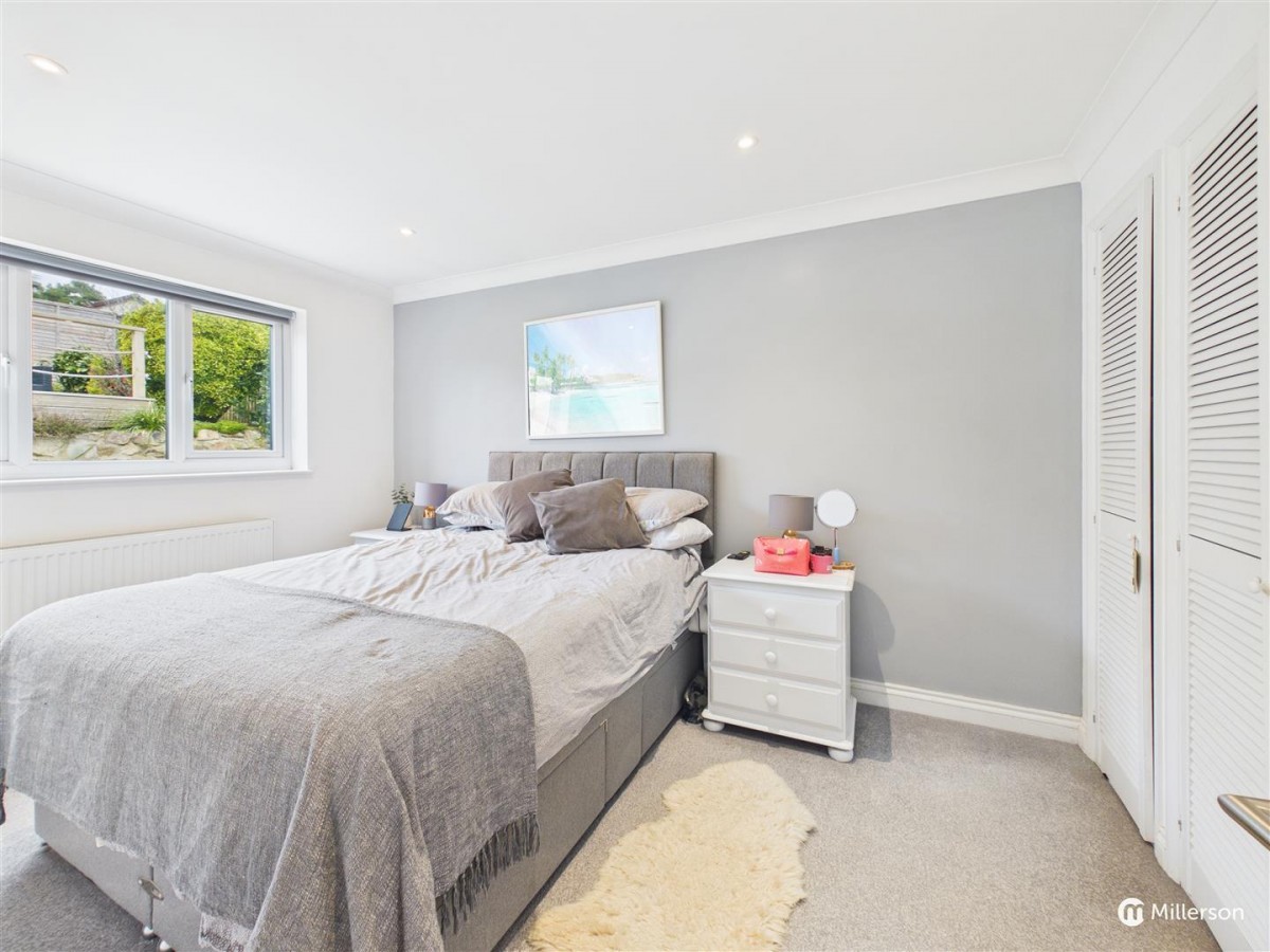Double glazed window overlooking rear garden. Built in louvre door wardrobes. Radiator. Inset ceiling spotlights. Fitted carpet.