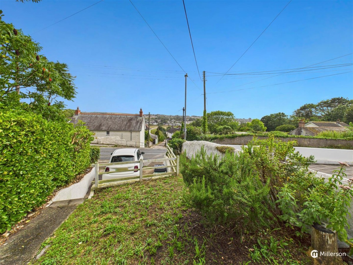 To the front is a parking space leading up to the south facing garden with lawn area, flower beds and views out towards Copper House Pool.