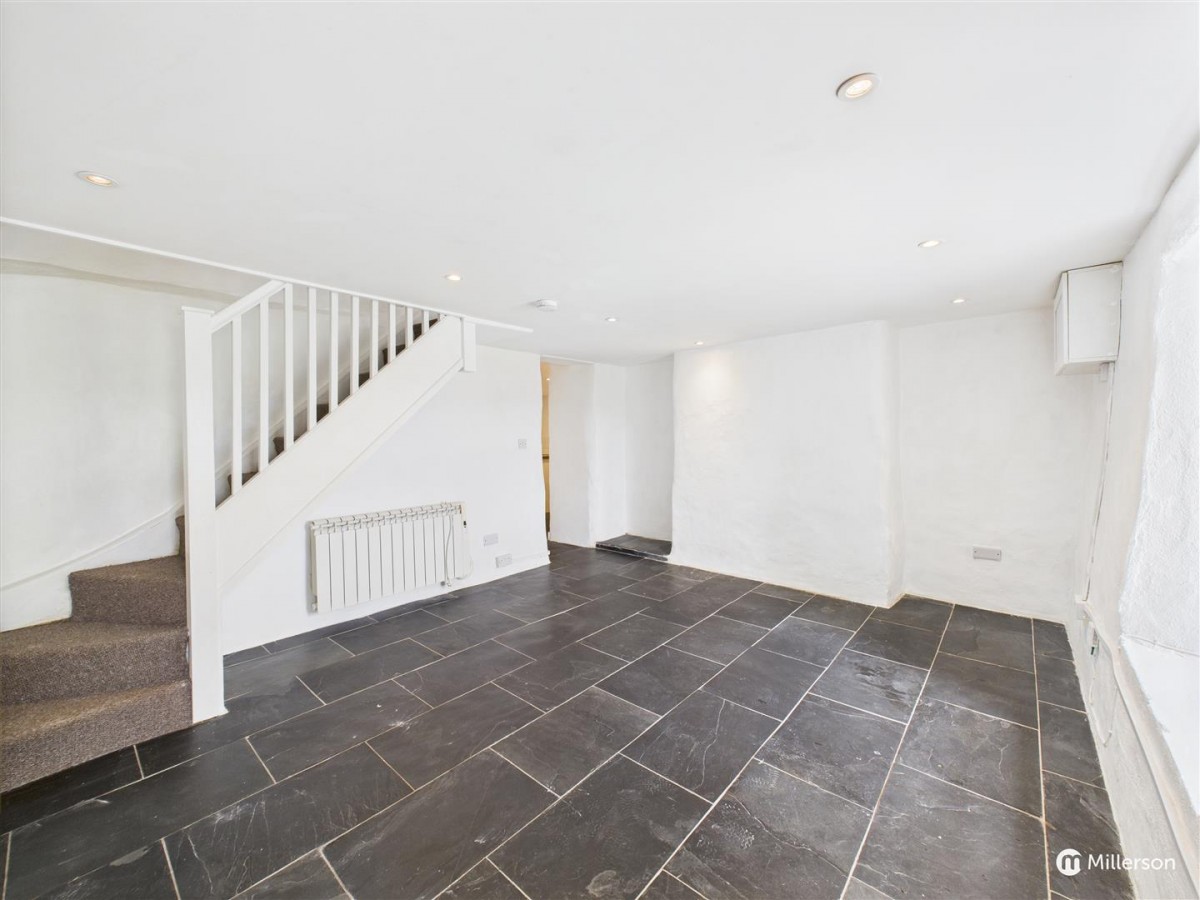 With slate flooring, double glazed window to front aspect and view down to Copper House Pool, window seat, stairs to first floor, wall mounted consumer box, alcoves, various power points, wall mounted electric room heater, doorway leading into: