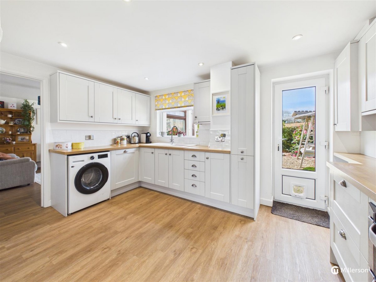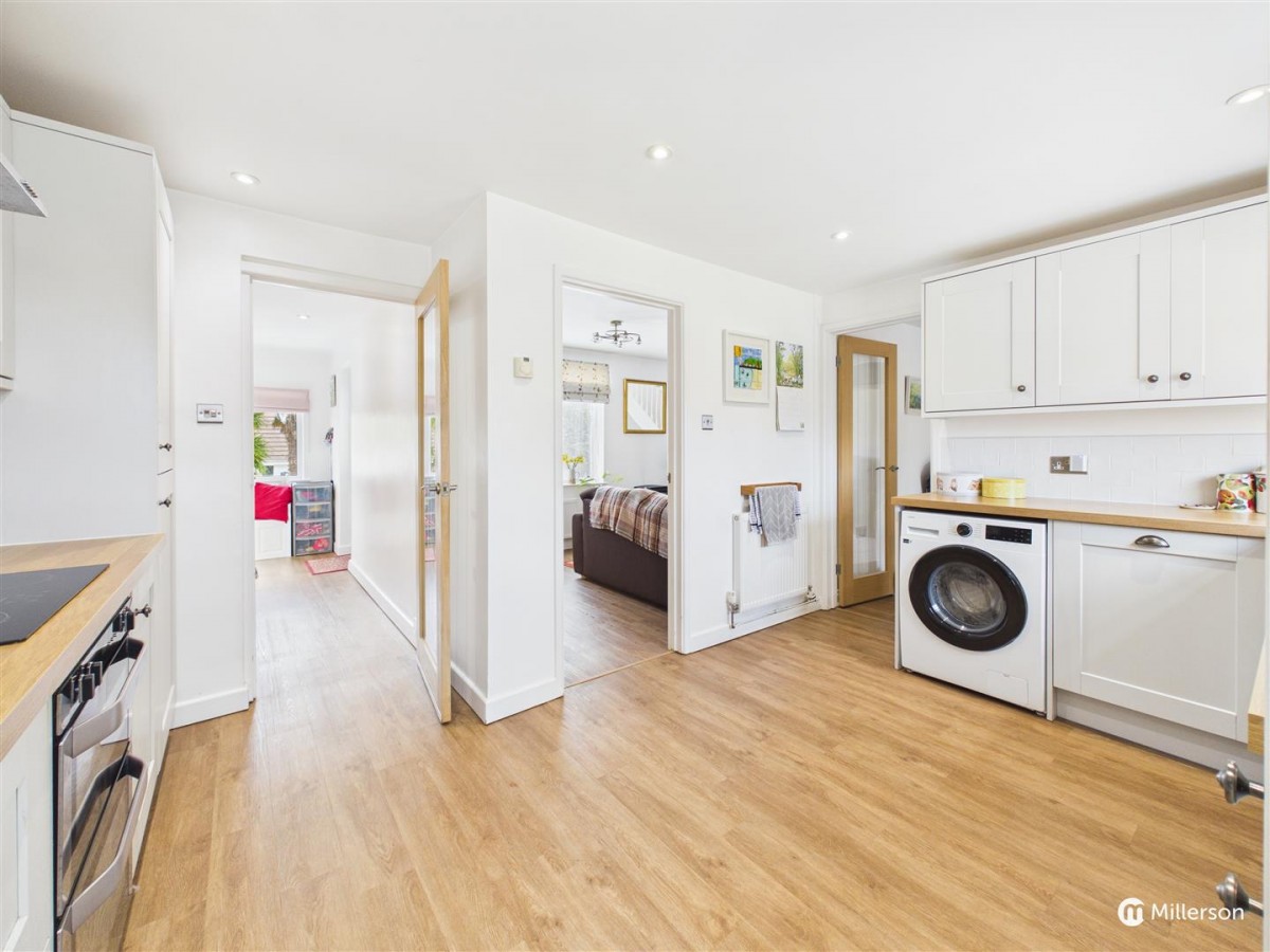 Space for washing machine, sink and drainer with mixer tap, tiled splash back, double glazed window to the rear, glazed door leading onto the rear garden.