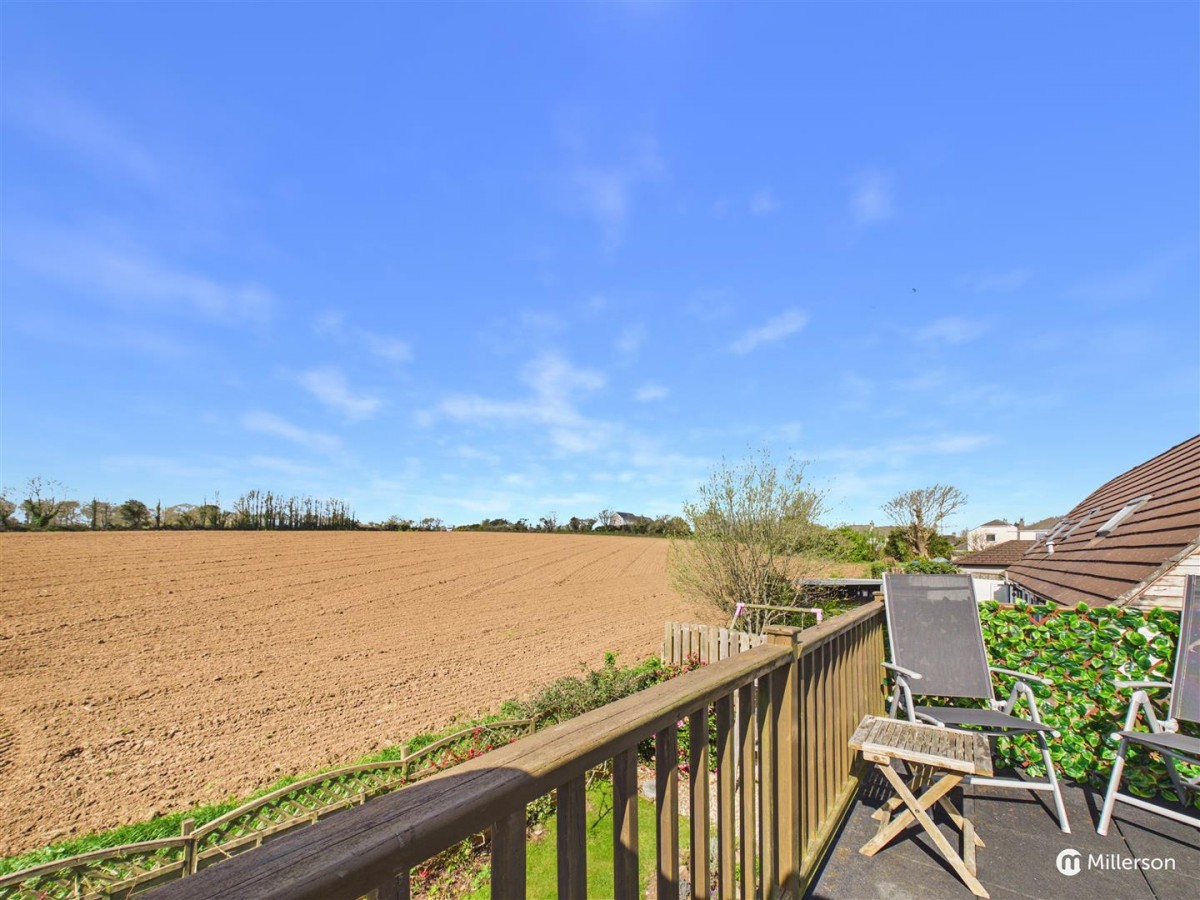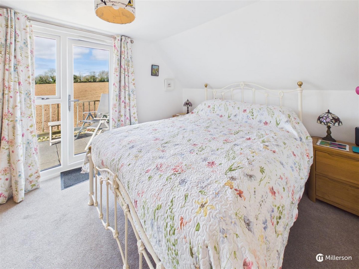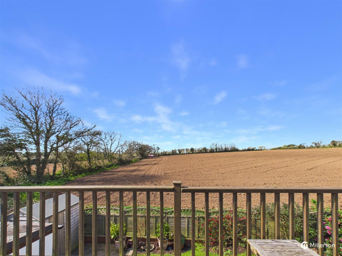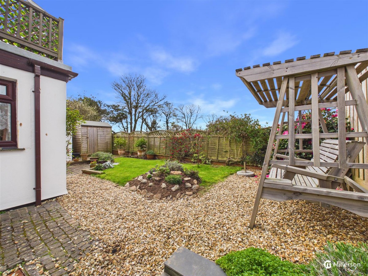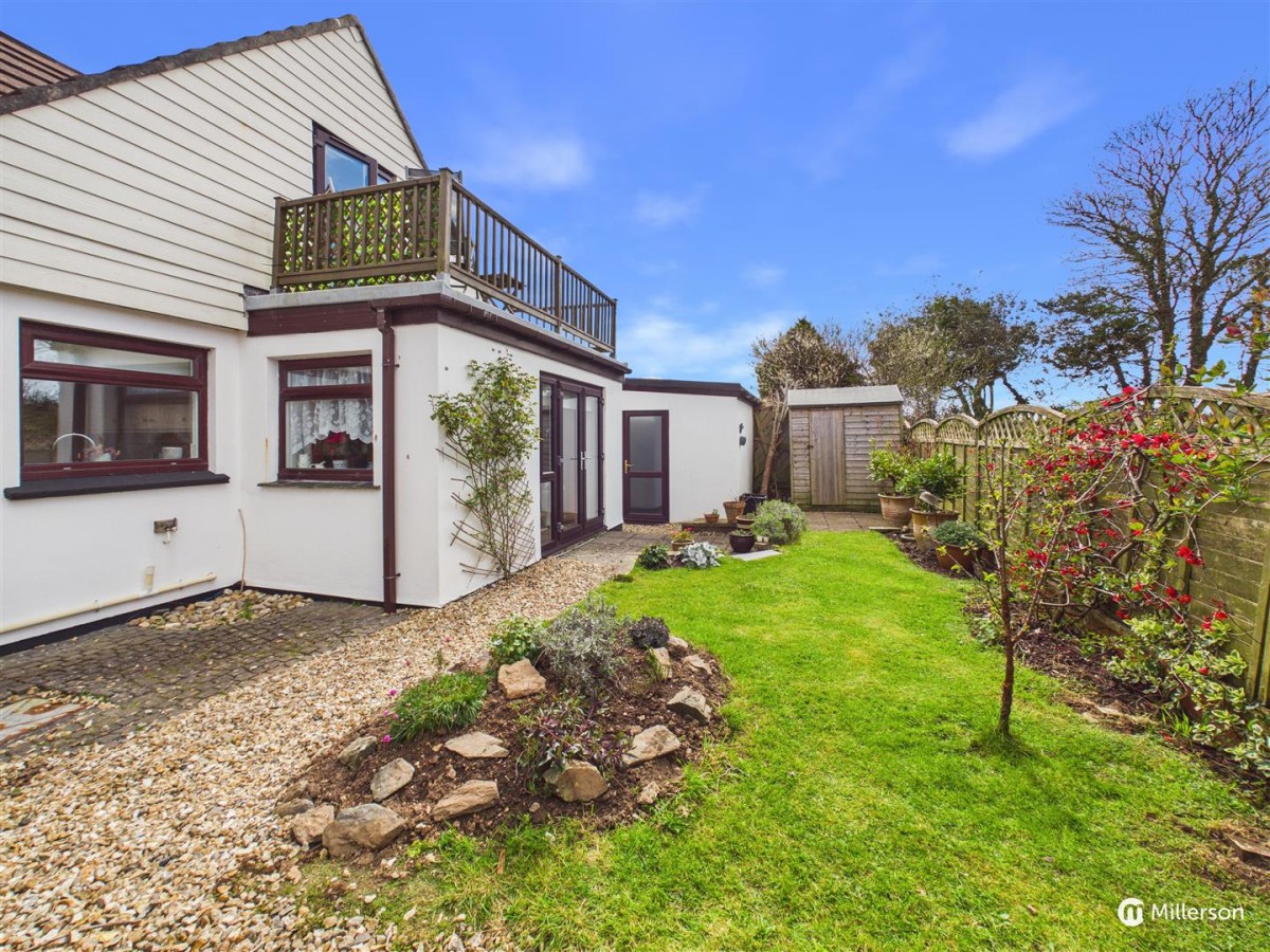 Enjoying a sunny aspect and attractively landscaped, laid mainly to lawn, gravel and paved patio. enclosed by fencing and enjoying views across the adjoining field.