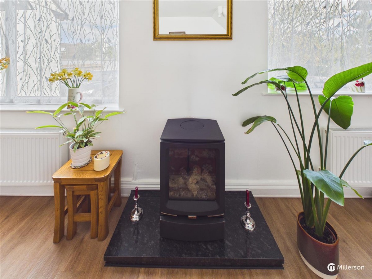 Vinyl flooring, two double glazed windows to the front aspect, feature gas fired log effect fire on a granite hearth, two radiators.