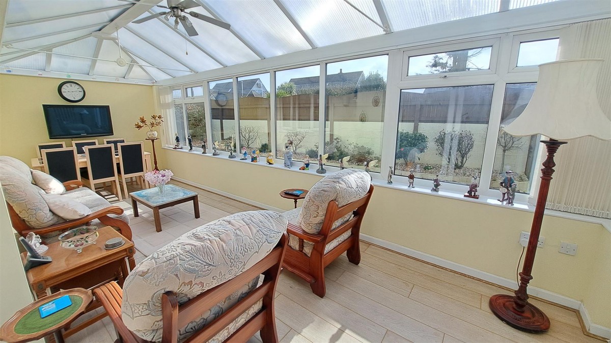 A superb addition to the home offering an alternative living space with double glazed windows, radiator, wood effect flooring, ceiling fan, patio doors to front garden.