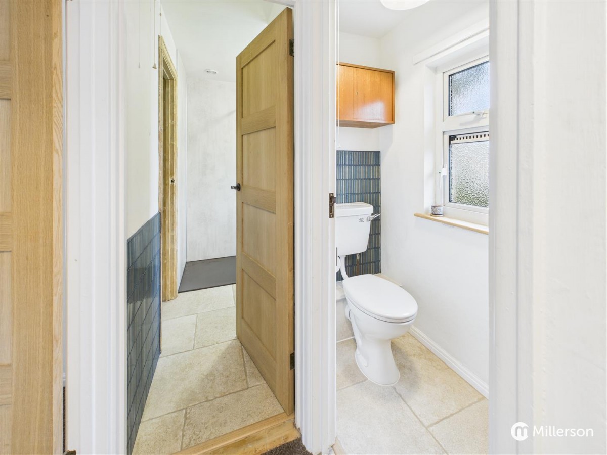 Continuation of the beautiful tiling from the Shower room, tiled floor, double glazed window with opaque glass and traditional-style WC.