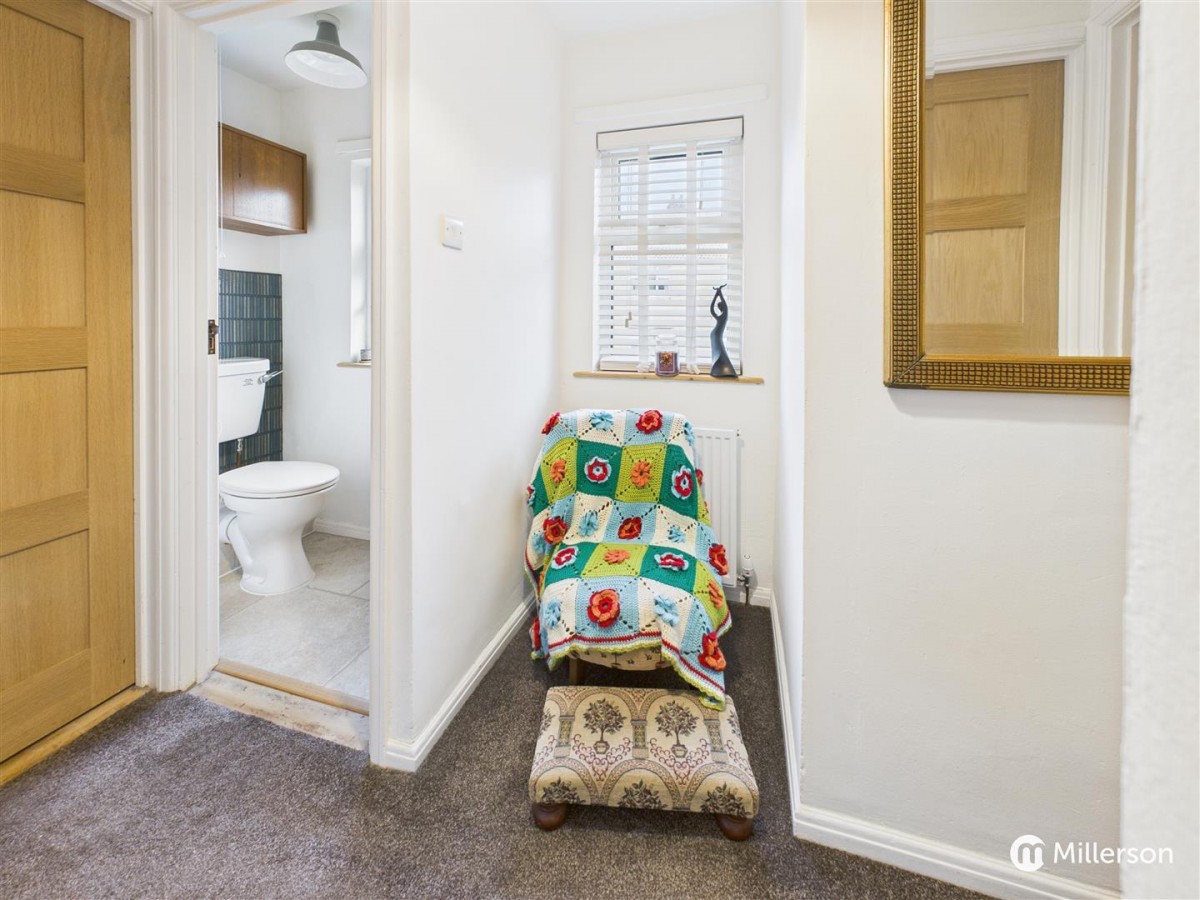 Solid Oak doors leading to all three bedrooms, a separate WC, and the Shower room. At the top of the stairs, a recessed area has been cleverly transformed into a cosy reading nook, complete with a double-glazed window above. Carpeted flooring and access hatch to loft.