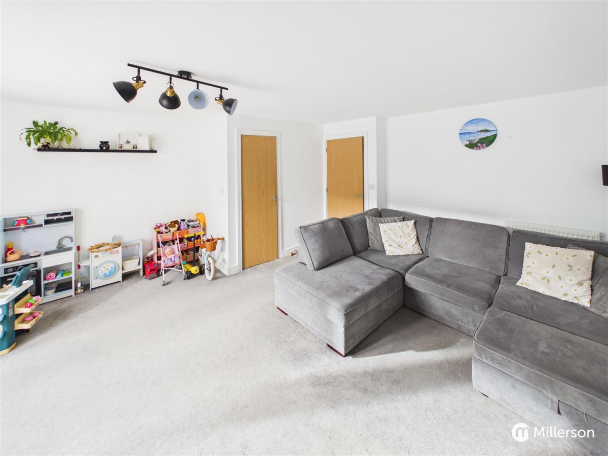 A fantastic light and airy room with UPVC double glazed French doors opening into the rear garden. Plenty of space for both Living and Dining areas. Built in storage cupboard. Further UPVC double glazed vertical window next to French doors.