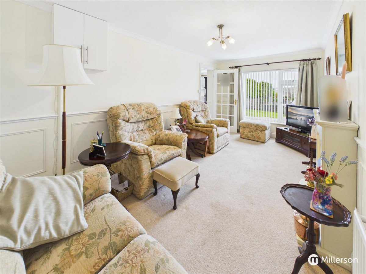 The property is approached through double vehicular gates onto a driveway providing off road parking for two cars along with a useful detached single garage. Adjacent to the drive is a level lawn with pedestrian gates to either side of the bungalow giving access into the rear. The rear enjoys a good sized enclosed garden which wraps around the bungalow to the side and rear incorporating an expansive lawn, several paved patios and a large tool shed.