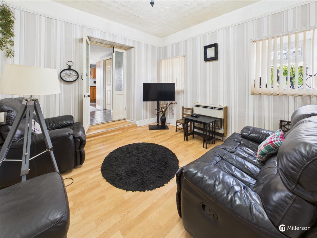 A lovely living space with original marble fireplace with gas fire, decorative architraves and ceiling rose, double glazed window, radiator.