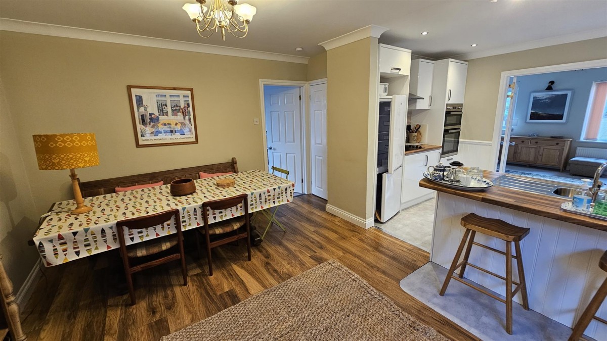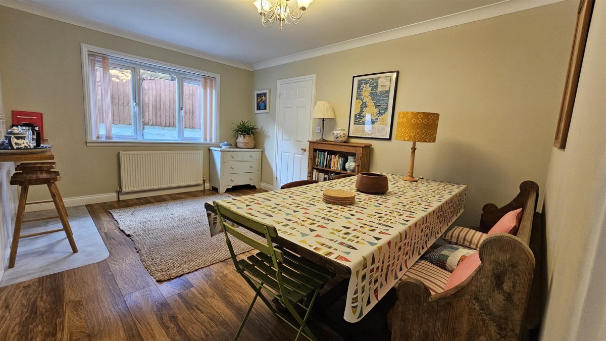 Laminate flooring, space for table and chairs, radiator, double glazed window to the side, built in cupboard with fitted shelving, door into bedroom and door into...