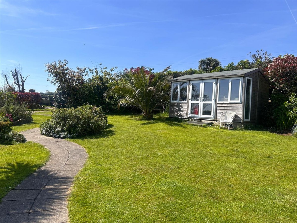 A great garden studio or workshop with a pitched roof, fitted carpet, fully insulated and with double glazed window to the front and side, double glazed doors to the front offering delightful far reaching rural northerly views towards Hayle, Carn Brea and St. Agnes.