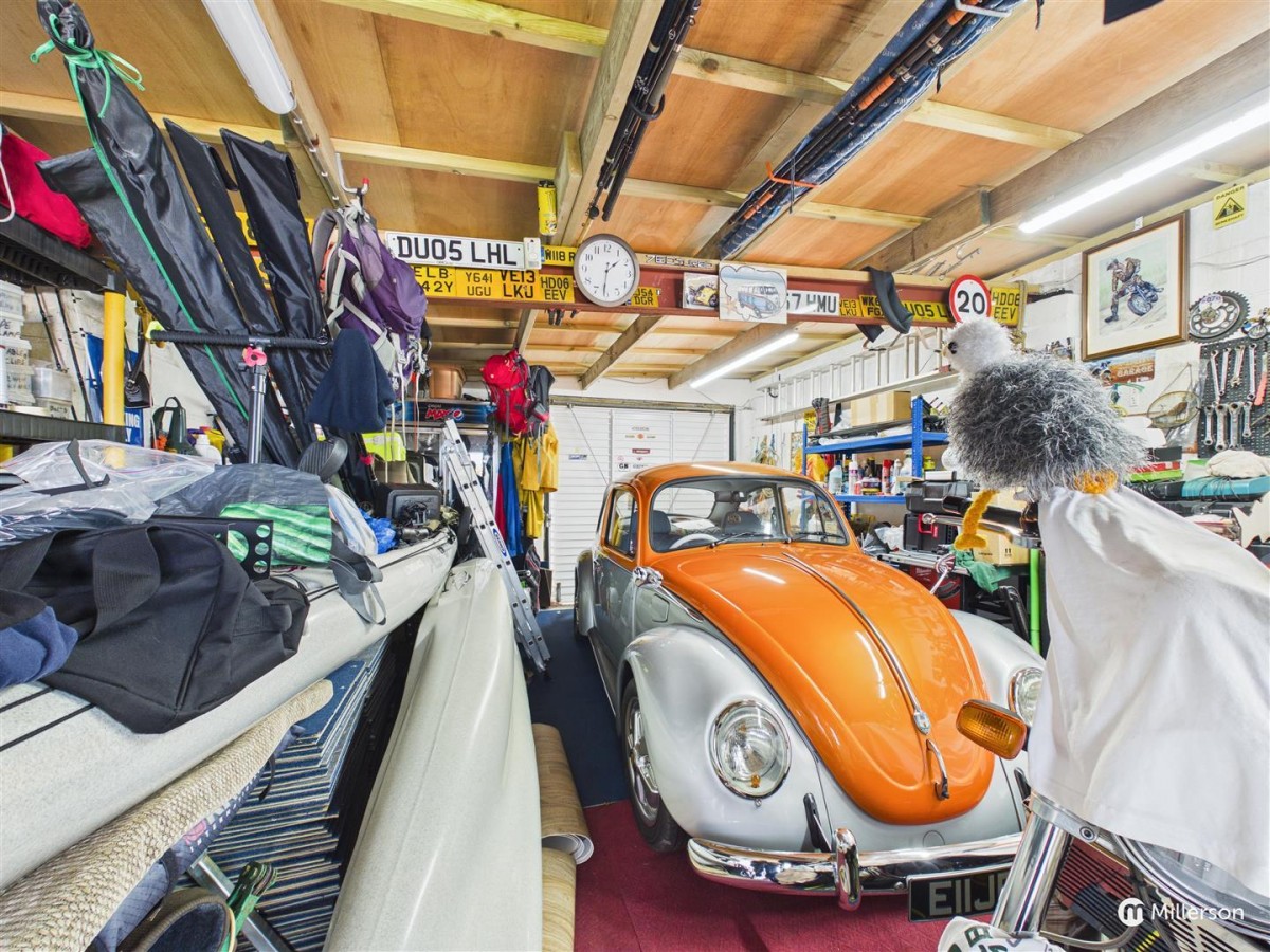 Situated at the top end of the garden and accessed via a rear service lane with parking opposite the garage for up to three cars. The garage has light and power supplied, fitted with an up and over door, double glazed window to the front and double glazed pedestrian door to the side. There is a pathway to the side of the garage which leads onto the garden.