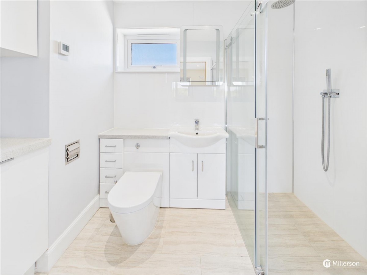 A beautifully appointed shower room comprising double shower cubicle, W.C and hand basin with fiited units, chrome effect heated towel rail, mirrored cabinet, extractor fan, obscure double glazed window, tiled flooring with underfloor heating.