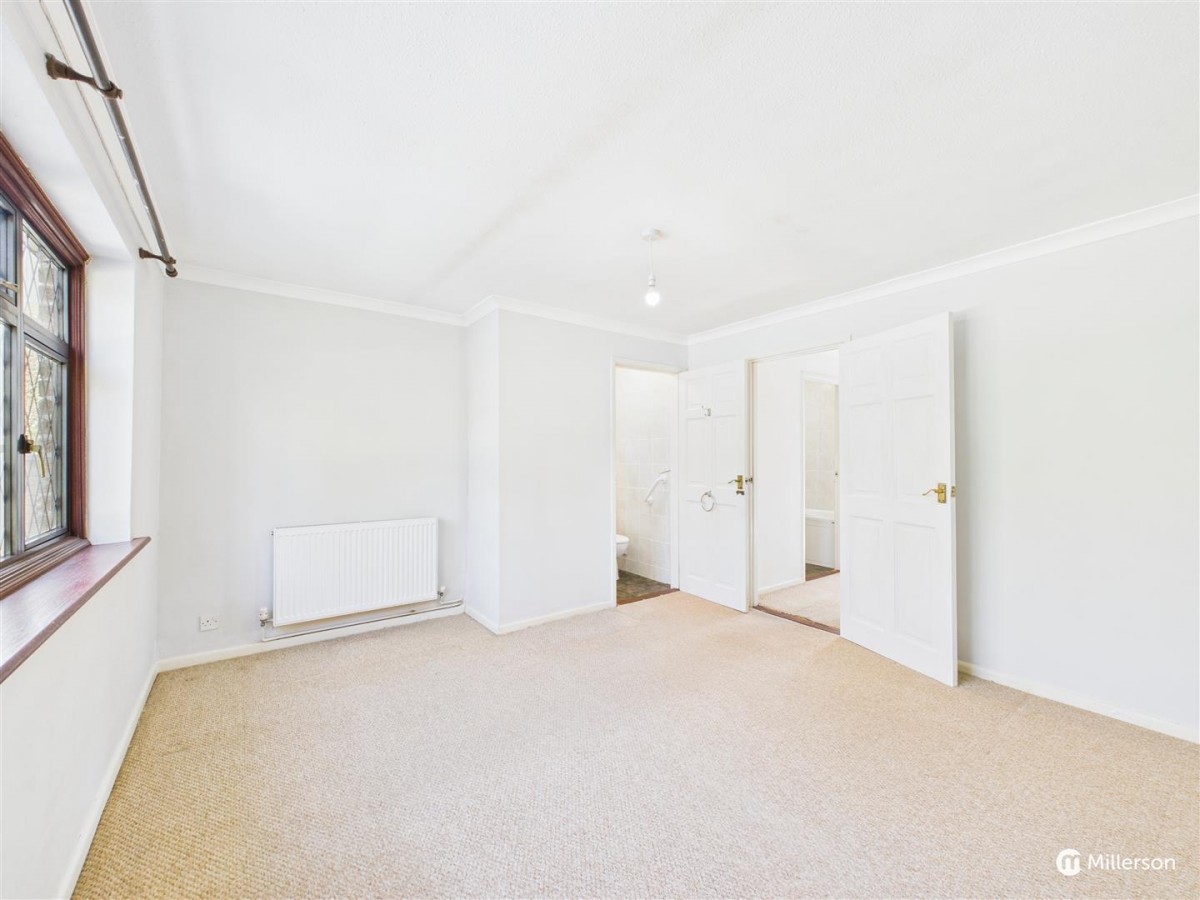 A large master bedroom with double glazed window, radiator, door into: