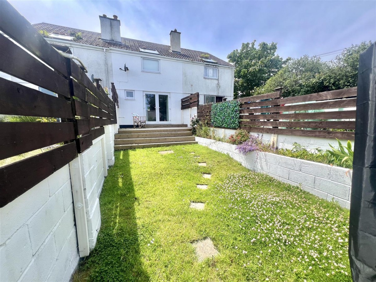 To the front of the property is an open low maintenance gravelled garden area. The rear garden is accessed via the patio doors in the living room and open out onto a recently refitted decking area which creates the ideal Alfrecso dining area or area to sit and relax and enjoy those lazy afternoons. There are steps leading down onto the lawn garden with stepping stones leading to the rear of the garden. The garden is fully enclosed by block walling and slatted fencing. At the rear of the garden is a door accessing into: