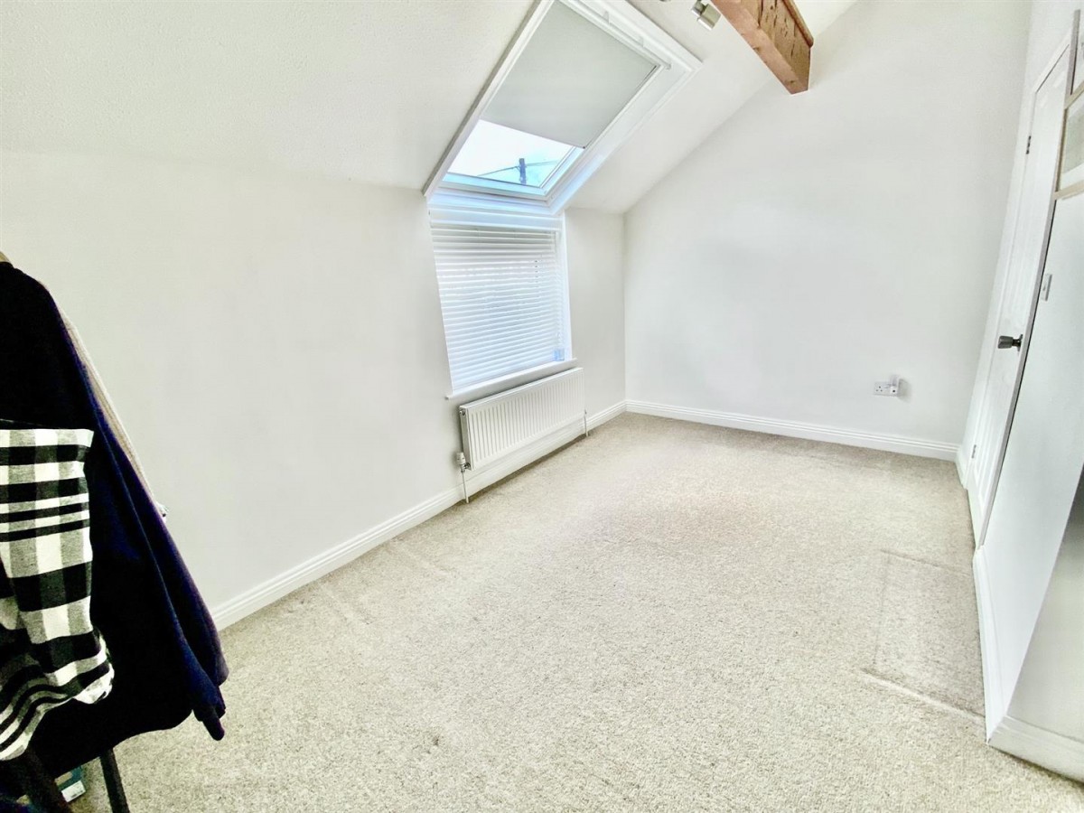Carpet. Radiator. Double glazed window to the front aspect with a Velux window above incorporating a blackout blind. Exposed beam. Door opening into: