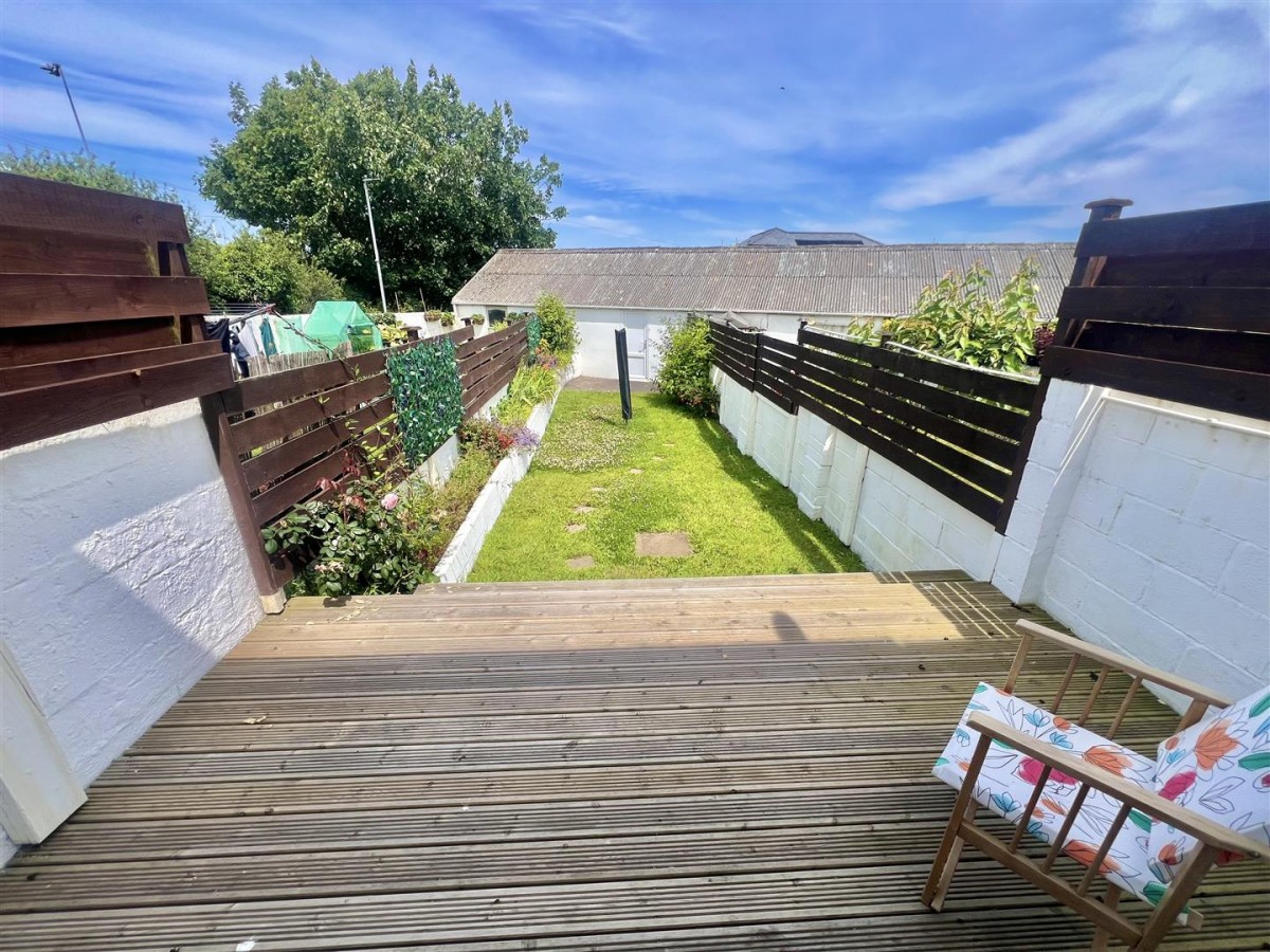 To the front of the property is an open low maintenance gravelled garden area. The rear garden is accessed via the patio doors in the living room and open out onto a recently refitted decking area which creates the ideal Alfrecso dining area or area to sit and relax and enjoy those lazy afternoons. There are steps leading down onto the lawn garden with stepping stones leading to the rear of the garden. The garden is fully enclosed by block walling and slatted fencing. At the rear of the garden is a door accessing into: