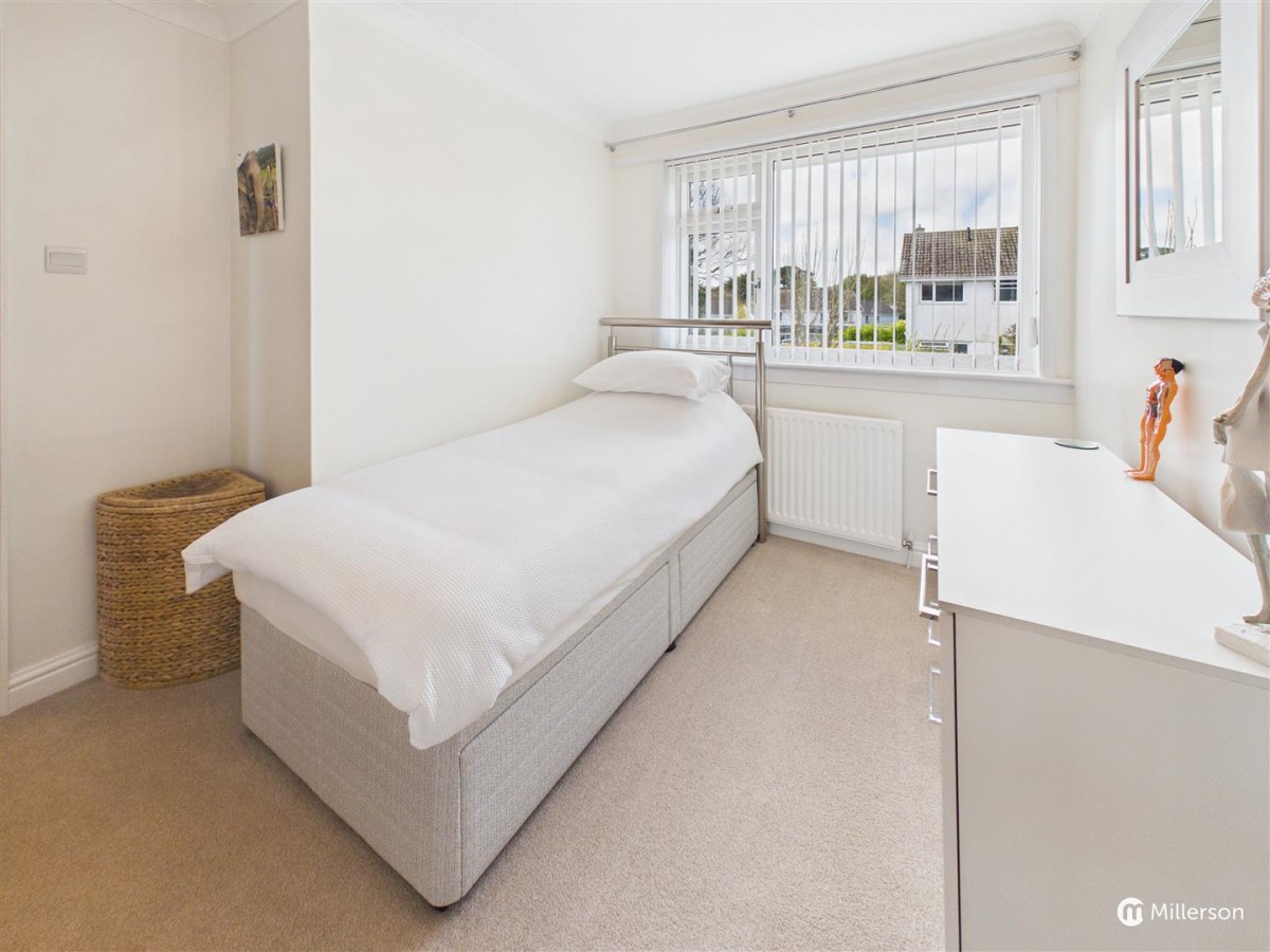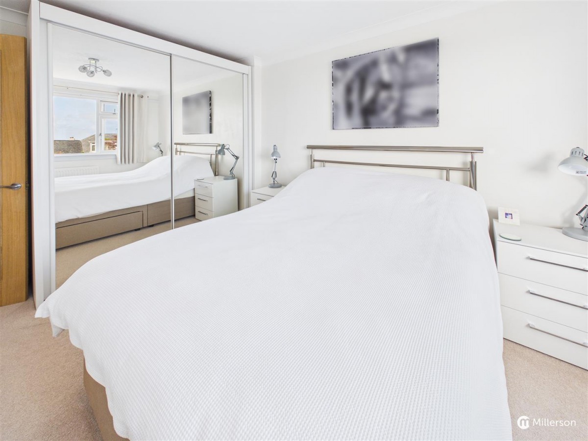 Large double glazed window to front enjoying distant views across St Ives Bay towards Godrevy Lighthouse and Hayle beach. Double mirrored wardrobe unit. Radiator.