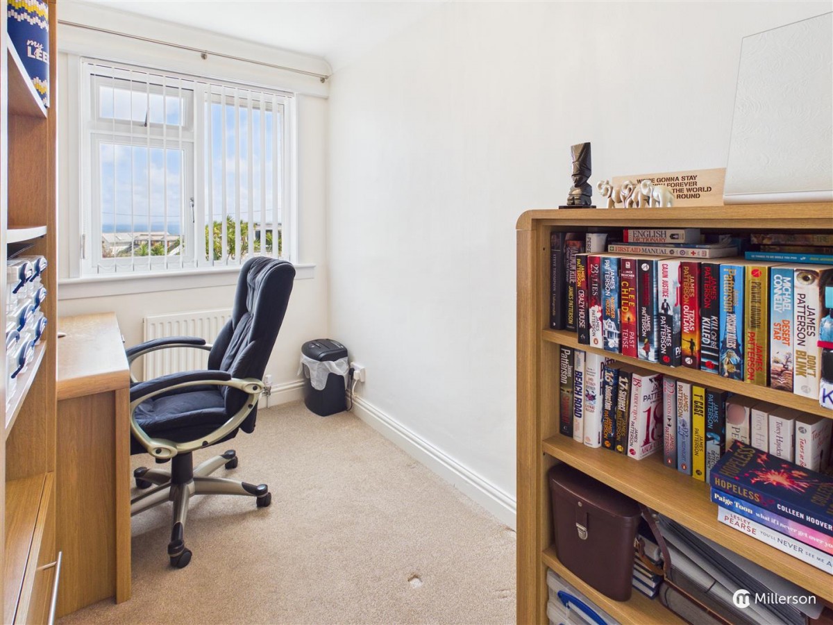 Double glazed window to front enjoying distant sea views across St Ives Bay towards Godrevy Lighthouse and Hayle beach. Radiator. Currently used an office.