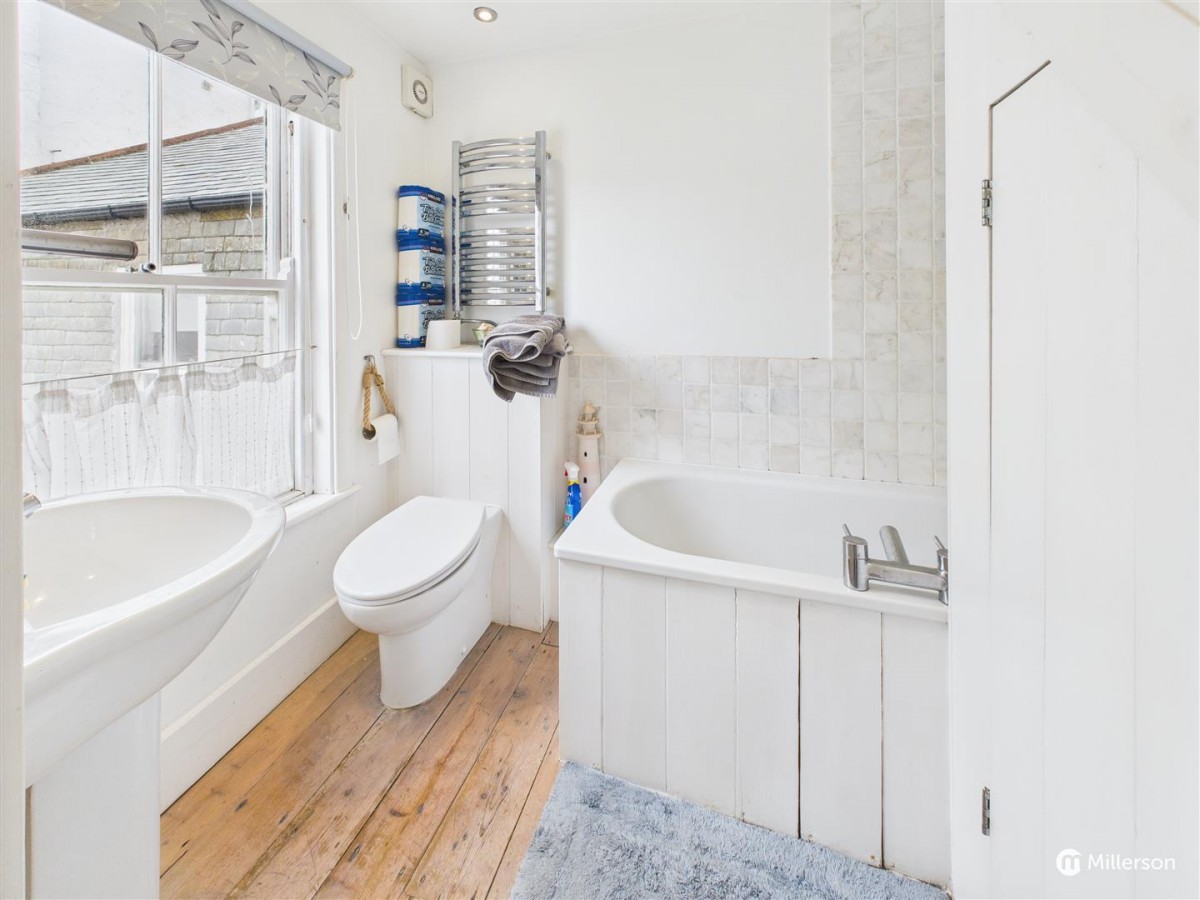 Exposed floor boards, wooden sash window to the side aspect enjoying views of the bay.