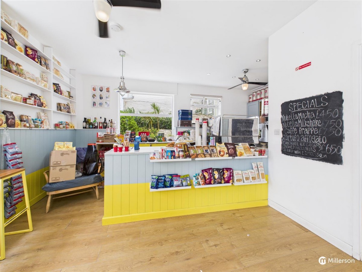 Situated on the ground floor of the building is a shop premises, currently let out and trading as a coffee shop. With a good sized, open plan kitchen area, ample seating space, and large windows to three sides enjoying sea and Harbour views.