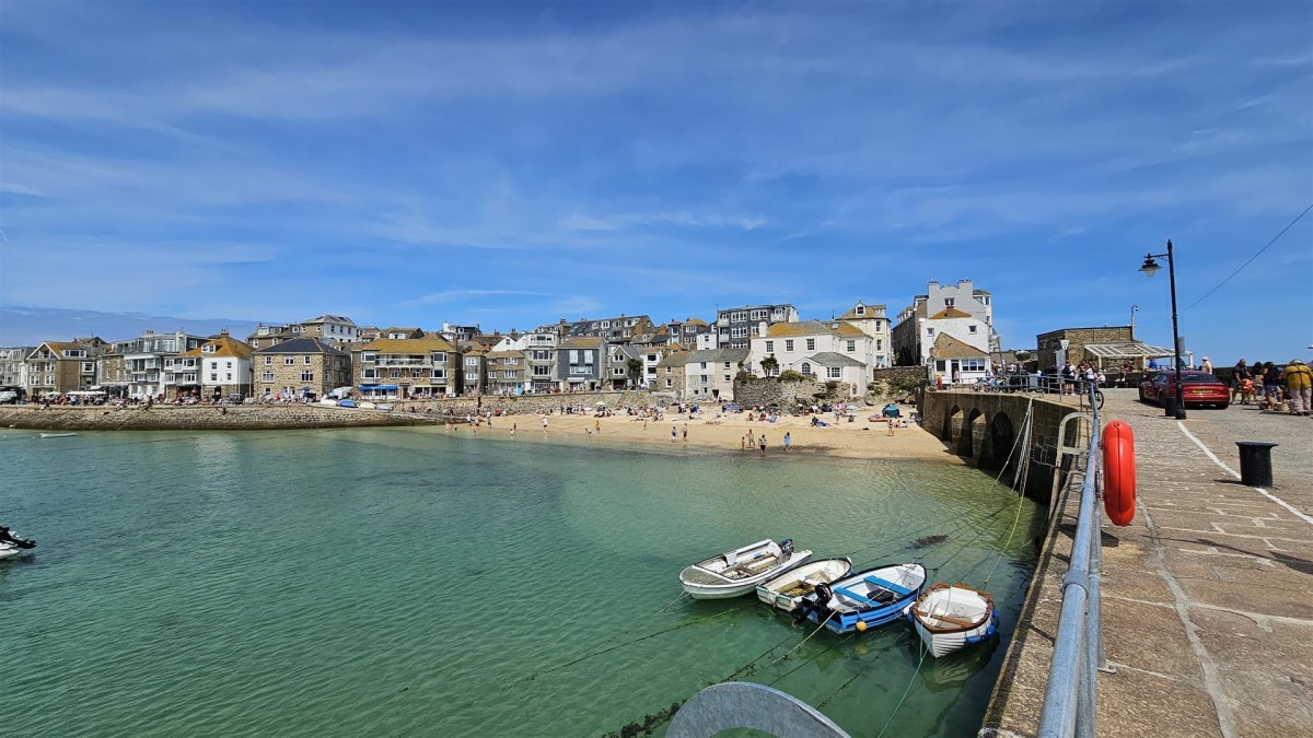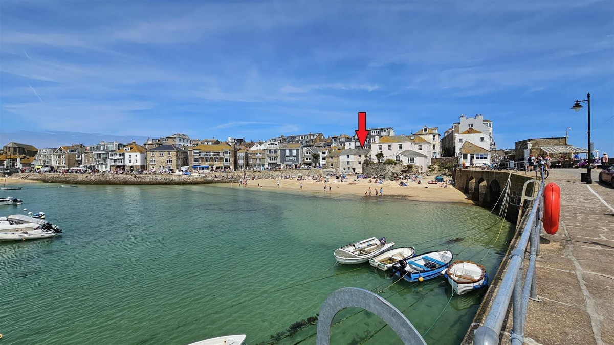 Access via the kitchen leads to a patio area creating an ideal sunbathing spot and offers the stunning full vista view of St Ives Harbour and across to Porthminster point. From the patio is direct access onto Harbour beach.